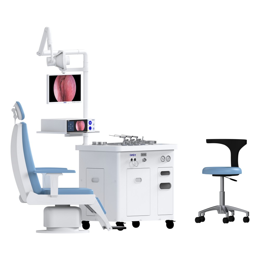 Durch den Verzicht auf Ölschmierung und die Verwendung eines **patentierten Schalldämpfer**-Mechanismus bietet Camjoy eine ultraruhige Betriebsumgebung, eine entscheidende Funktion für empfindliche pädiatrische oder ängstliche erwachsene Patienten. Die CB-Serie bietet komplette Konfigurationen, darunter den CB003 mit der Konsole, dem erstklassigen **CH103 Medical Electric Examination Chair** und einem vollständigen Bildgebungssystem, das einen leistungsstarken, kosteneffizienten Konkurrenten zu Konsolen wie dem **ATMOS S 61** oder **Otopront** bietet.
